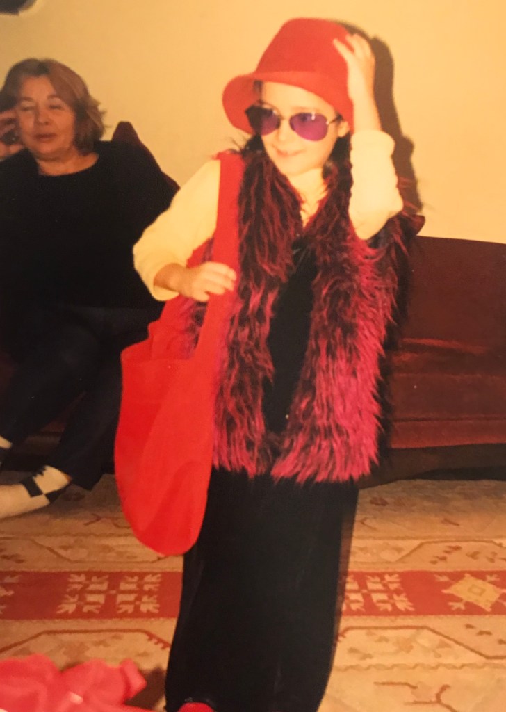 Kıyafetlerim her zaman çok havalıydı, çoğu yurtdışından gelir, İstanbul’dan alınanlar da çok özel parçalardı. Ayakkabılarıma çok özenliydim, mutlaka topuklu ve gösterişli olmalıydı. Çizme mi? Çocuk için üretilen en uzun çizme, en kısa etek mutlaka benimdi. Bu konuda bir takıntım vardı. Kadıköy Bahariye’deki Pıtırcık çocuk ayakkabıcısı favori mağazamdı, her sene banko 1 ayakkabı Pıtırcıktandı… İddialıydı çünkü. Çantasız evden çıkmazdım. Annem de tarzıma çok özen gösterirdi, çünkü onun da kimseye benzemeyen bir tarzı vardı. Hala… Hep havalı bir duruşum olmuştu. İnanılmaz süslüydüm, sonra sonra sadeleştim. Hatta öylesine sadeleştim ki, en sevdiğim şey baştan aşağı siyah giyinmek oldu. Ne mini etek kaldı, ne süslü aksesuarlar… Her şey yerinde ve yaşındayken güzelleşti… Oturaklı oldum zamanla…